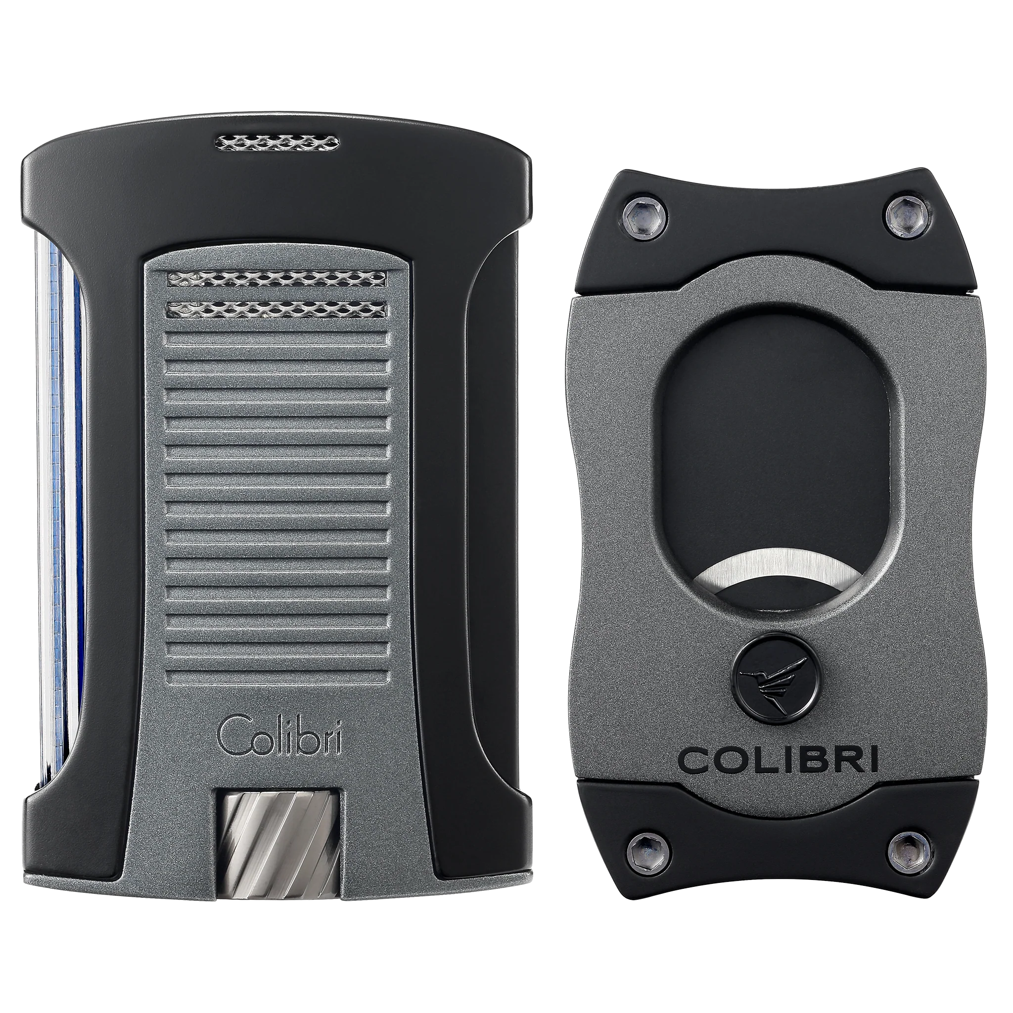 Colibri Daytona + S-Cut gift set, single jet flame, wind resistant, single action ignition, with 50% more fuel capacity than average + color coated blades, 66 ring gauge, spring-loaded release, and ergonomic design.