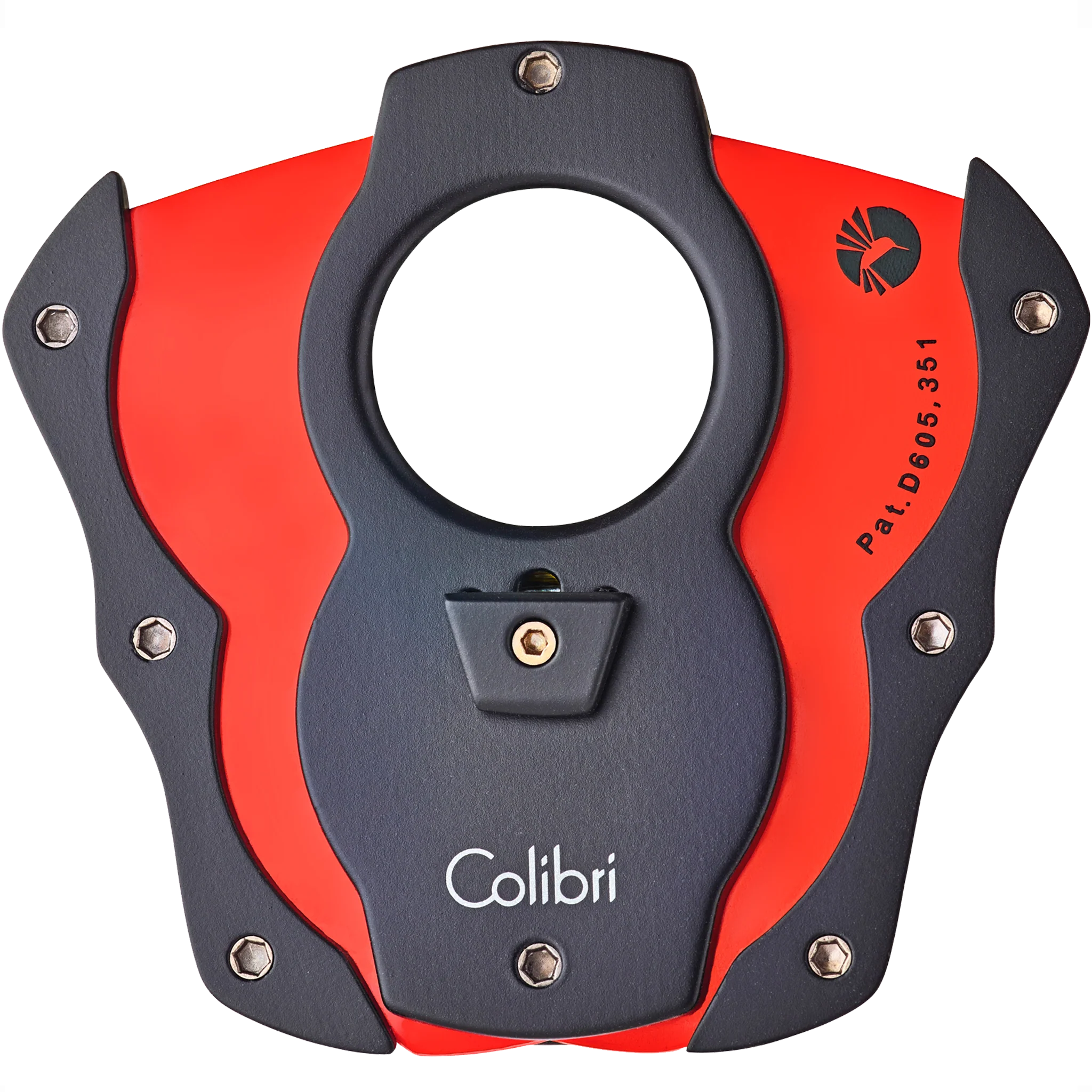 Double guillotine cigar cutter with 440 stainless steel blades, a 62 ring gauge aperture for large cigars, spring-loaded release, ergonomic handles for a sure grip and a durable rubberized finish. The blades are vibrantly color-coated with a non-stick, easy-to-clean lacquer.